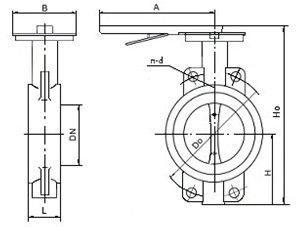 手柄襯氟對(duì)夾蝶閥--主要外形和連接尺寸: