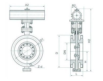 D643W 不銹鋼氣動(dòng)硬密封法蘭蝶閥--主要連接及外形尺寸: