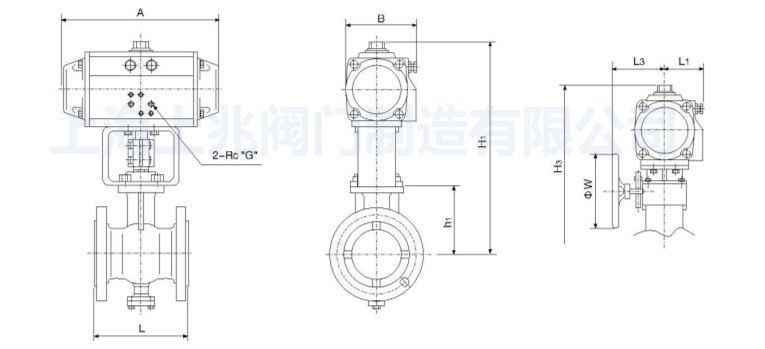 氣動(dòng)V型調(diào)節(jié)球閥--主要外形及連接尺寸: