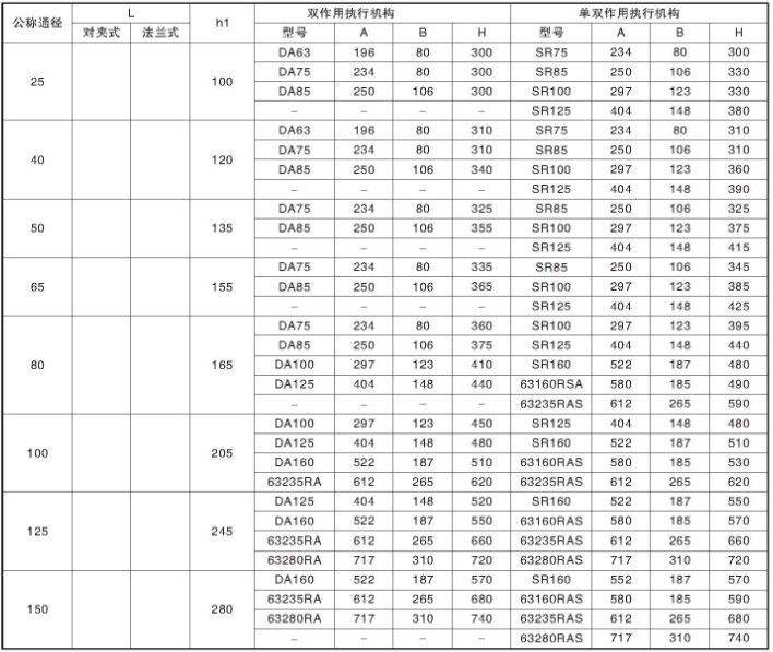 型 式DA、SR、RA、RAS單作用、雙作用活塞式執(zhí)行機(jī)構(gòu)